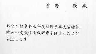 高次脳機能障がい支援者養成研修を無事に終了しました。