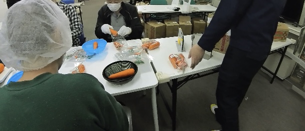 午前:人参の袋詰め・リサイクル紙の分別