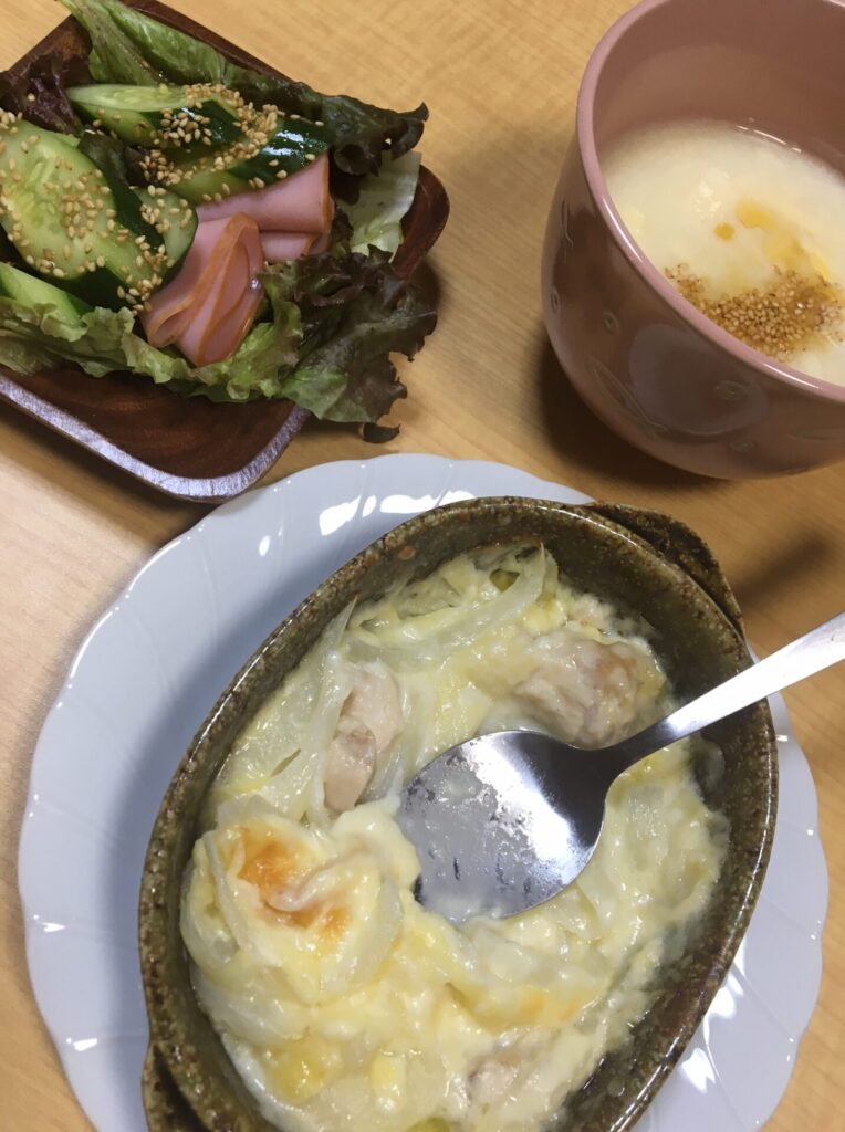 『調理体験』 お知らせ 2022.08.192025.12.03 毎週、水曜日と金曜日の午前中に調理会を実施しています。 調理会は、人気のある活動の一つでもあるため、 ローテーションを組んで実施しています。 本日のメニューは、 グラタン・サラダ・スープ とっても美味しそうでした!