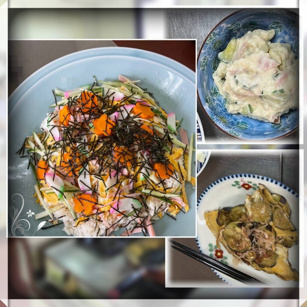 6月はちらし寿司・なすバター・ポテトサラダをつくりました♪